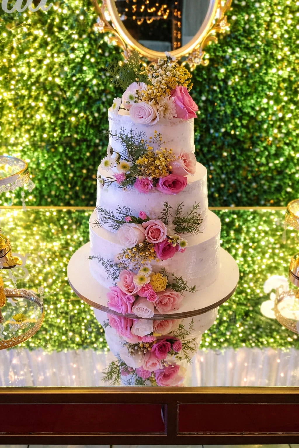 Hay momentos que merecen ser celebrados con arte. Nuestro diseño de tres niveles combina la sencillez de una textura impecable con la frescura de un jardín primaveral. Las rosas y margaritas cuidadosamente seleccionadas aportan una explosión de color y vida, haciendo que este pastel no solo sea un postre, sino una experiencia visual. Ideal para eventos al aire libre o recepciones elegantes con un toque natural.